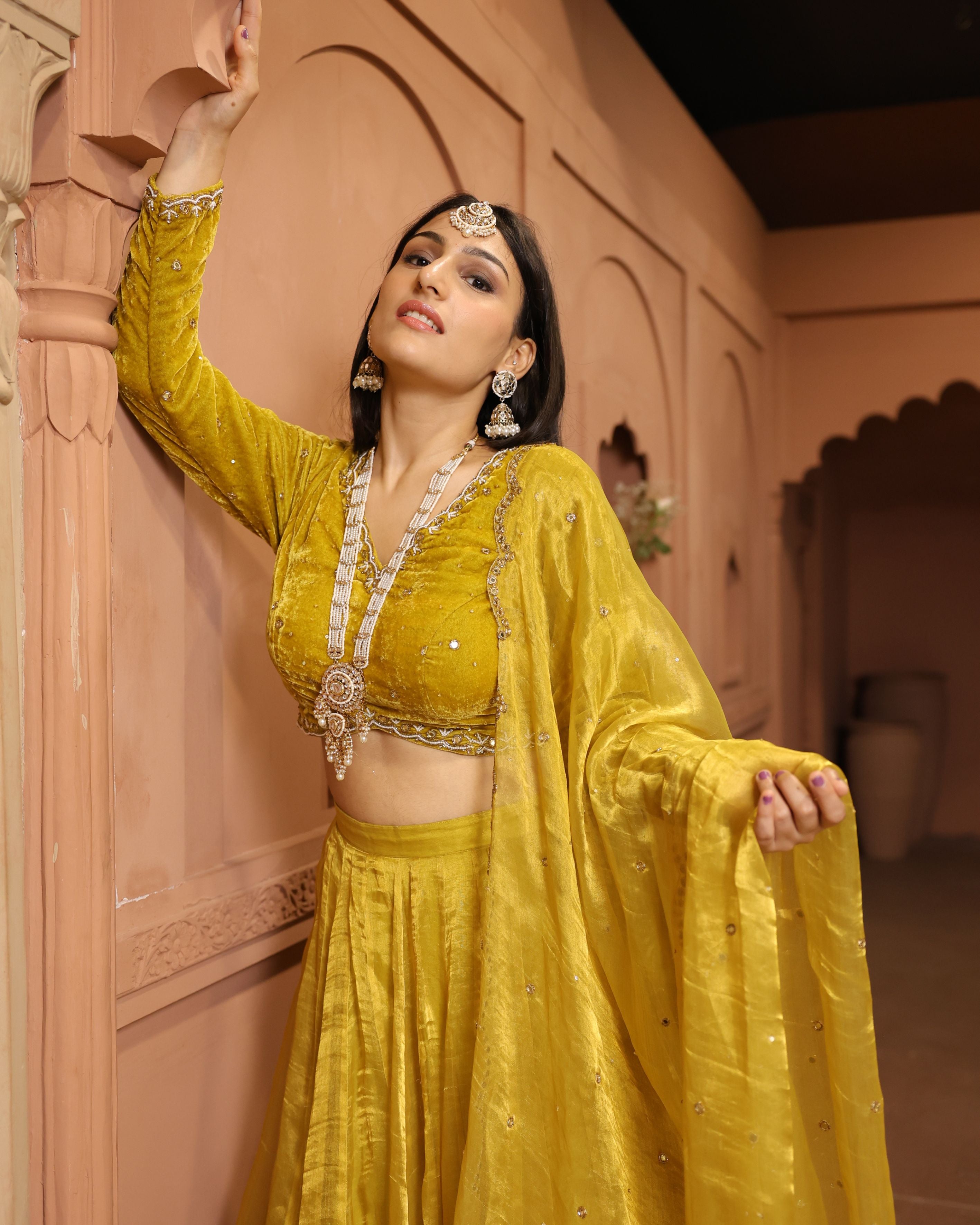 Deep Yellow Tissue Organza Lehenga with Dupatta & Blouse